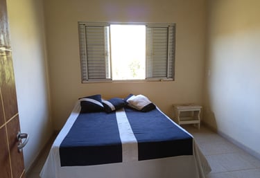 Quartos aconchegantes com charme mineiro e vista para a natureza.
